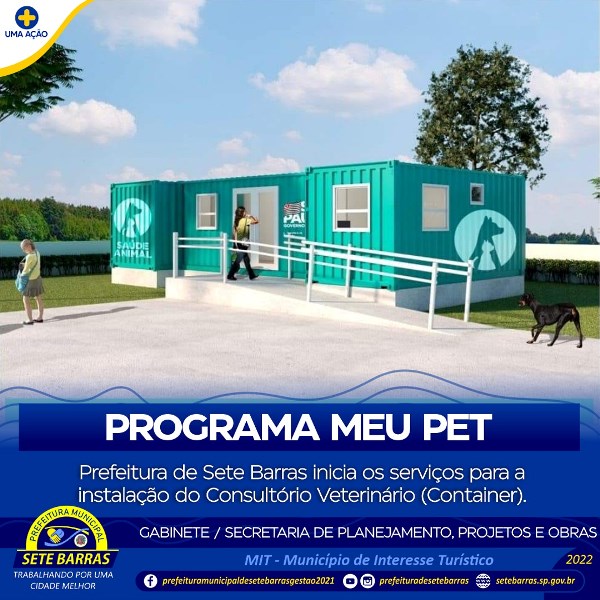 A Prefeitura de Sete Barras iniciou na primeira semana de março os serviços para instalação do contêiner “Programa Meu Pet”, ação do Governo do Estado que distribuirá consultórios veterinários em 130 cidades.