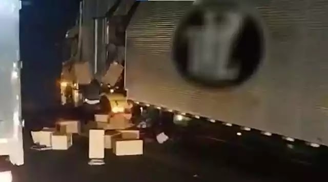Uma carreta teve sua carga parcialmente saqueada na noite de domingo (05) em uma rodovia federal da Região Metropolitana de São Paulo. O veículo foi bloqueado pela rastreadora, o que chamou a atenção de populares que, aproveitando a situação, iniciaram o saque da carga.